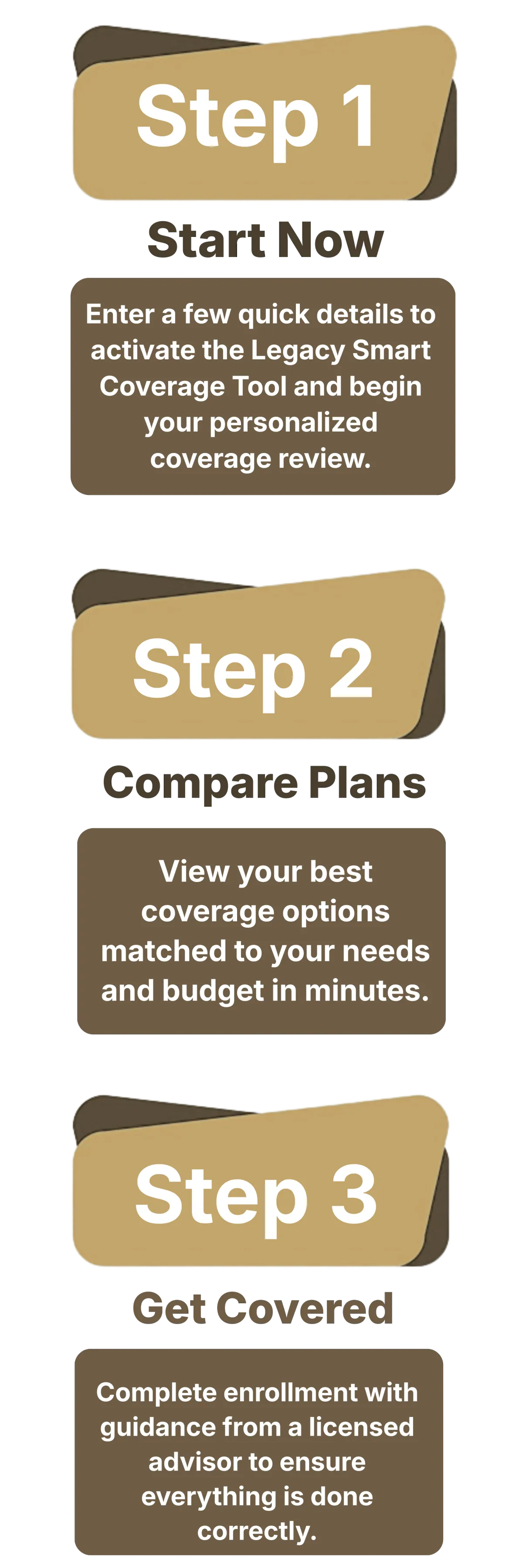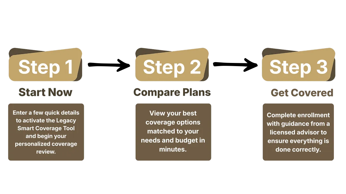 Costs vary based on location, age, household size, and coverage type. Using the Legacy Smart Coverage™ Tool, we help you compare options and identify plans that fit your budget and coverage needs.